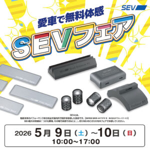 5月9日-10日「SEV」体感フェアを開催いたします! 5月9日(土)、10日(日)の2日間「SEV」体感フェアを開催いたします! 愛車でSEVを無料体感!オートバックスでSEVを体感しよう! 愛車にSEVを取り付け試乗してSEVの効果...